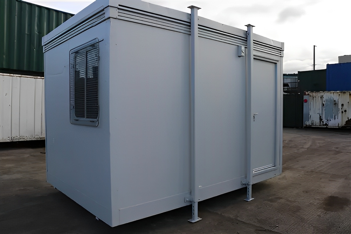 12 Fuß x 8 Fuß große, vandalensichere Bürokabine aus Stahl | Mobiles Baustellenbüro & Besprechungsraum