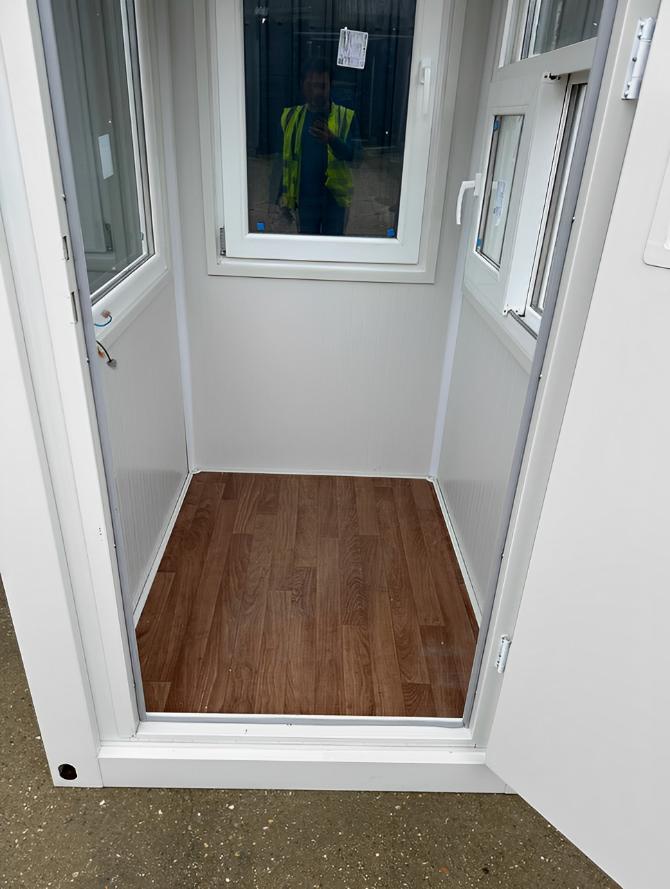 Die Einheit ist für eine einzelne Sicherheitskraft konzipiert und bietet einen warmen und trockenen Unterschlupf bei geringem Platzbedarf.