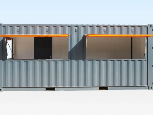 Dieses 20-Fuß-Container-Café ist eines unserer beliebtesten umgebauten Seecontainerprojekte. Es basiert auf einem standardmäßigen 20-Fuß-x-8-Fuß-Seecontainer und wurde von unserem hauseigenen Spezialistenteam für die Nutzung als Speise- oder Getränkeausgabe umgebaut.